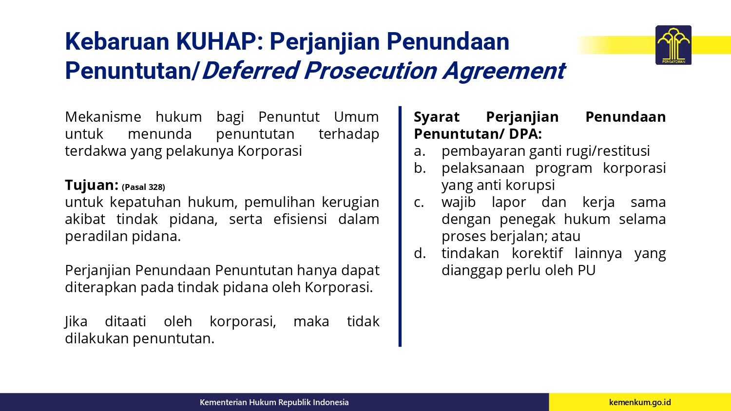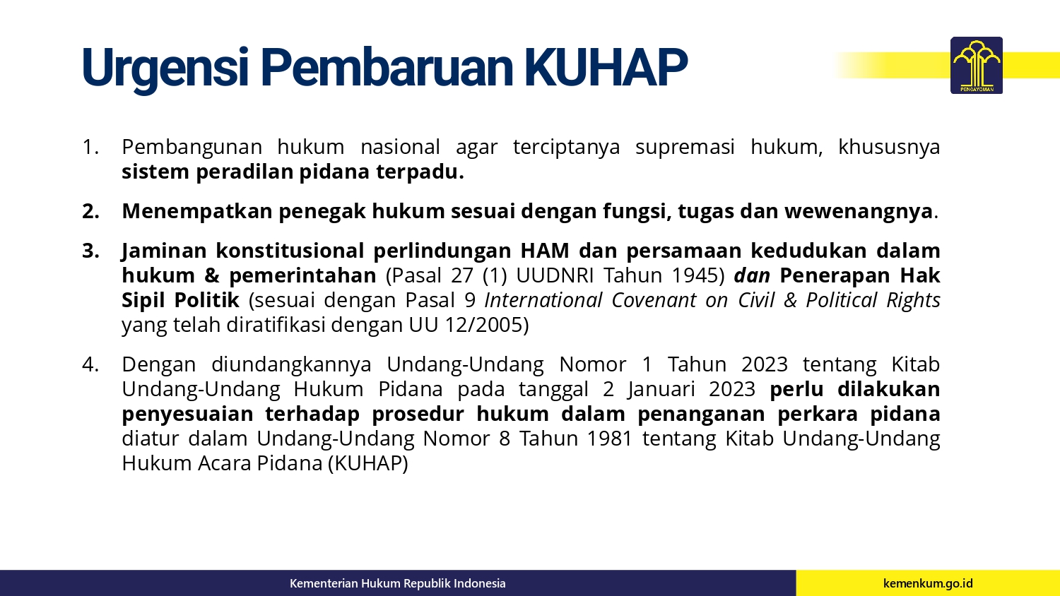Beranda Tajuk Berita KUHAP dalam Bingkai Reformasi Hukum Nasional dan Penguatan Negara Hukum Tajuk BeritaKUHAP dalam Bingkai Reformasi Hukum Nasional dan Penguatan Negara HukumRedaksi Warta Kurator0 min bacaJanuari 31, 2026Februari 1, 202657×KUHAP dalam Bingkai Reformasi Hukum Nasional dan Penguatan Negara HukumSebarkan artikel ini Prof. Dr. Edward Omar Sharif Hiariej, S.H., M.Hum. Wakil Menteri Hukum Republik Indonesia Post Views: 57 Pos TerkaitTajuk BeritaDari Papua hingga Purbalingga, Alumni SMPN 10/88 Hadiri Halalbihalal di MalangTajuk BeritaPenangkapan Oknum Hakim di DepokTajuk BeritaHalomoan Kandidat Terkuat Ketum PERADI RBA, Ini FaktanyaTajuk BeritaSejumlah Pasal KUHAP Mulai Digugat ke MKTajuk BeritaCALS Bongkar Borok Seleksi Hakim MKTajuk BeritaTokoh Politik Kota Batu, Cahyo Edi Purnomo Tutup Usia